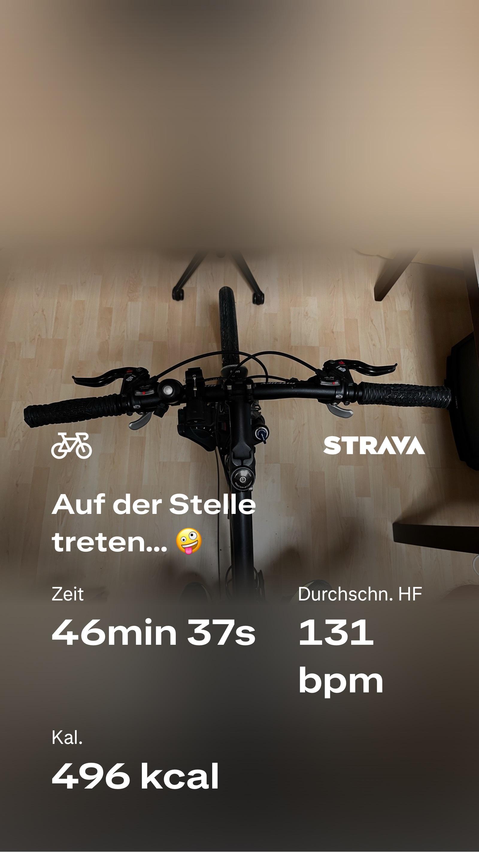 Nachdem ich letzte Woche beim #Laufen übel umgeknickt bin und der Knöchel noch immer dick und bunt ist, bedurfte es heute einer Alternative. Also das alte Trekking-Bike in den fast so alten #Rollentrainer gespannt und 45 Minuten auf der Stelle getreten. Das ist einfach nicht meine Welt... Steigt der Spaß mit der Qualität des Films, der nebenbei läuft? Oder gibts andere gute Ratschläge?