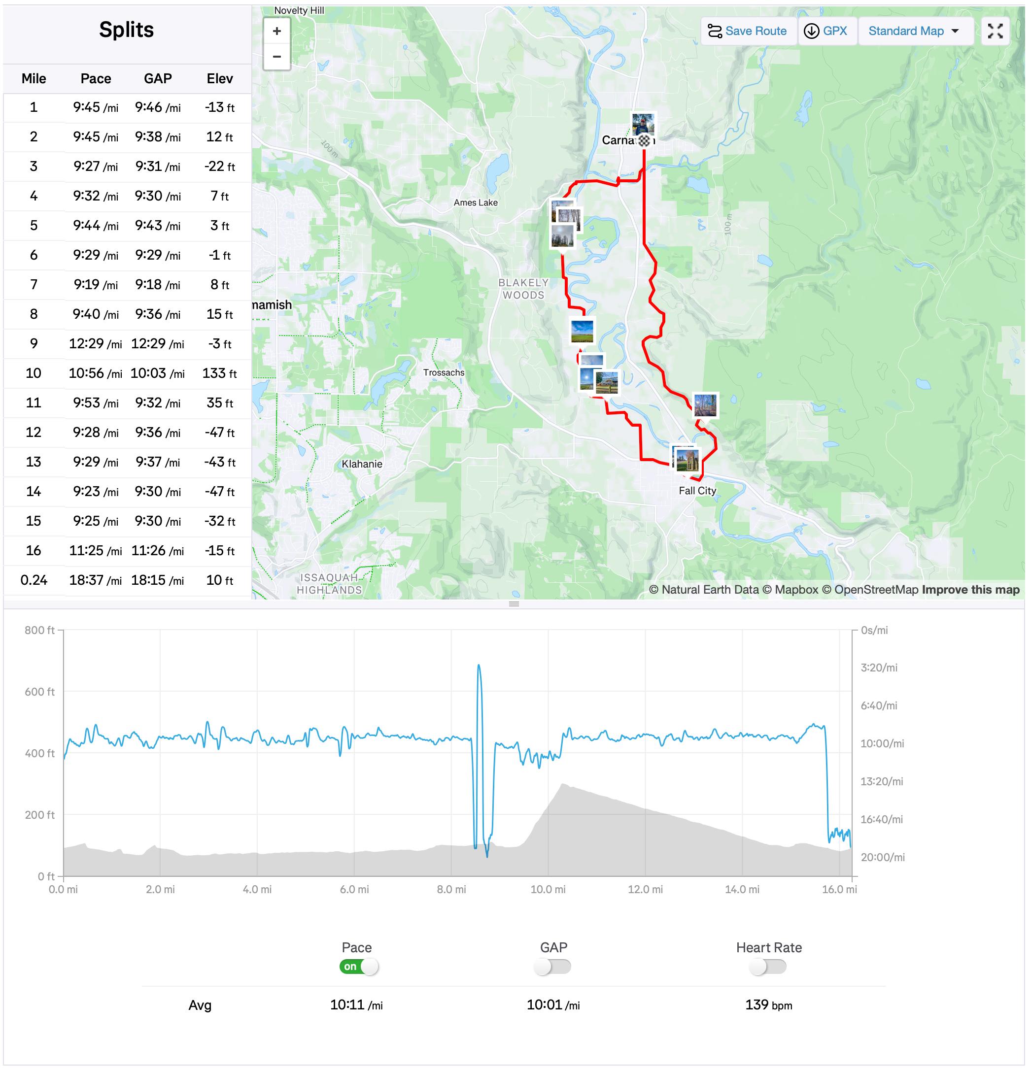 This #LongRunSunday I ran my #72 #halfMarathon and hit my 2,400mi yearly goal a whole month early (2,404mi)! Route was Carnation -> Fall City and back (16.09mi, moving time 2:43:48).