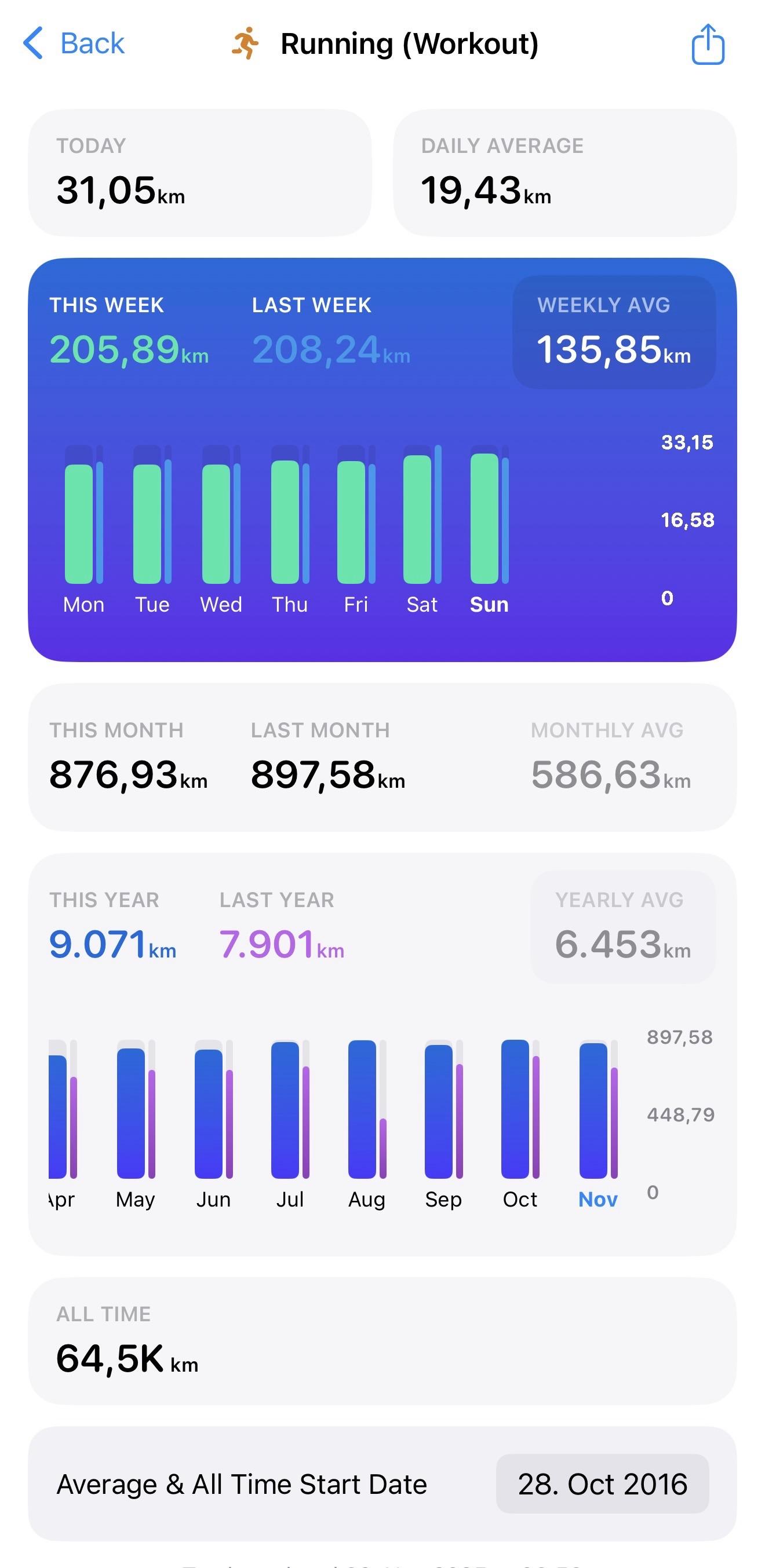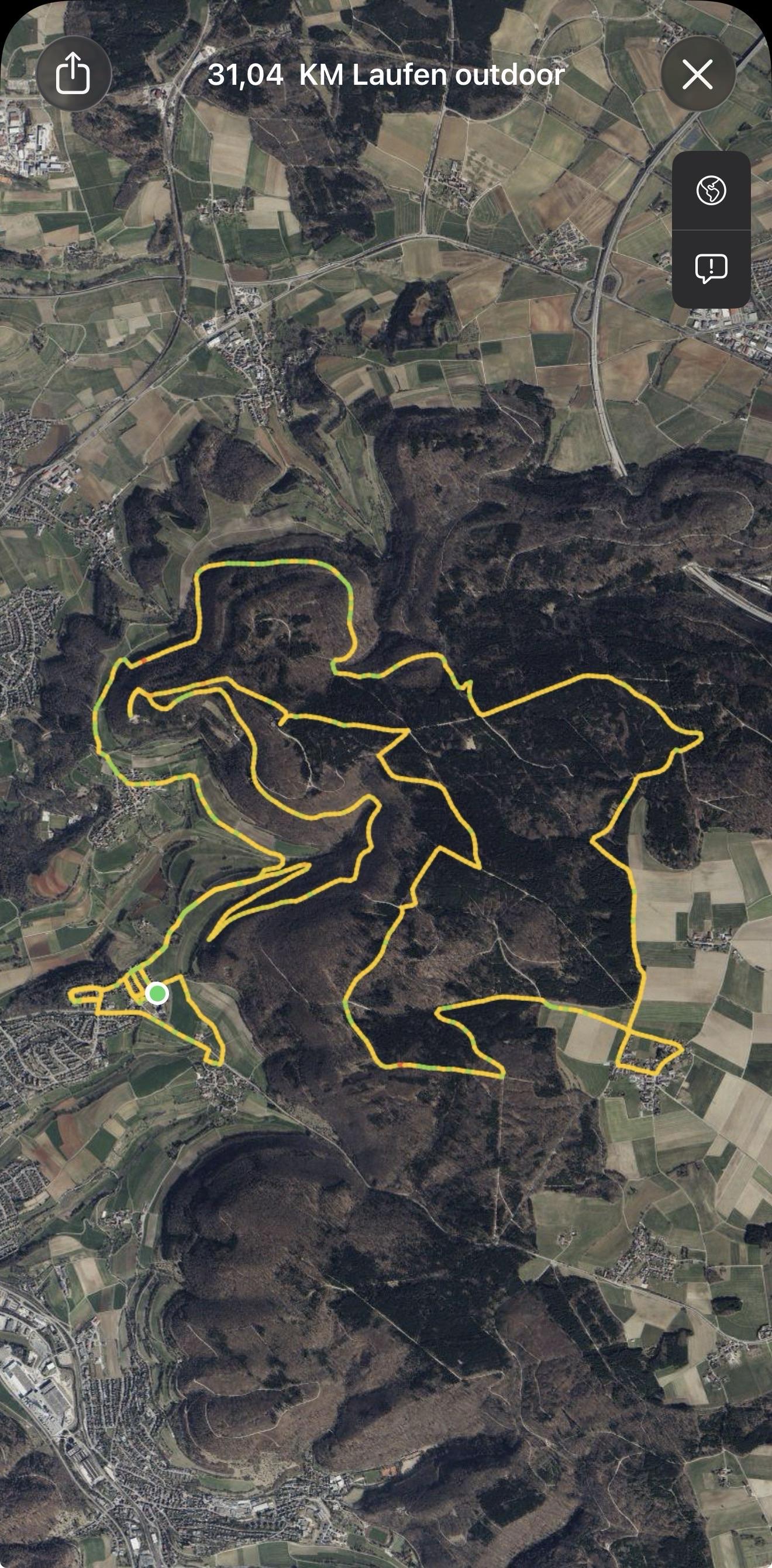 I‘m altering my route on a daily basis now, at least in small parts. That keeps me entertained and yearning for more. Also, I have to tick off somewhere around 30K every day until the end of the year to reach my 10,000 kilometers goal. There‘ll be days I simply cannot get there, so I must get in some longer runs whenever possible. That‘s what I did today. It’s just a 31K run, but it will offset one 29K run. Better than nothing. #Running #applewatchultra3 #10000in2025 #goals
